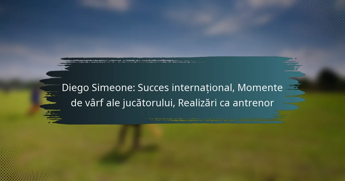 Diego Simeone a obținut un succes internațional semnificativ atât ca jucător, cât și ca antrenor. Contribuțiile sale la echipa națională a Argentinei și influența sa în competițiile internaționale de club subliniază impactul său asupra fotbalului.